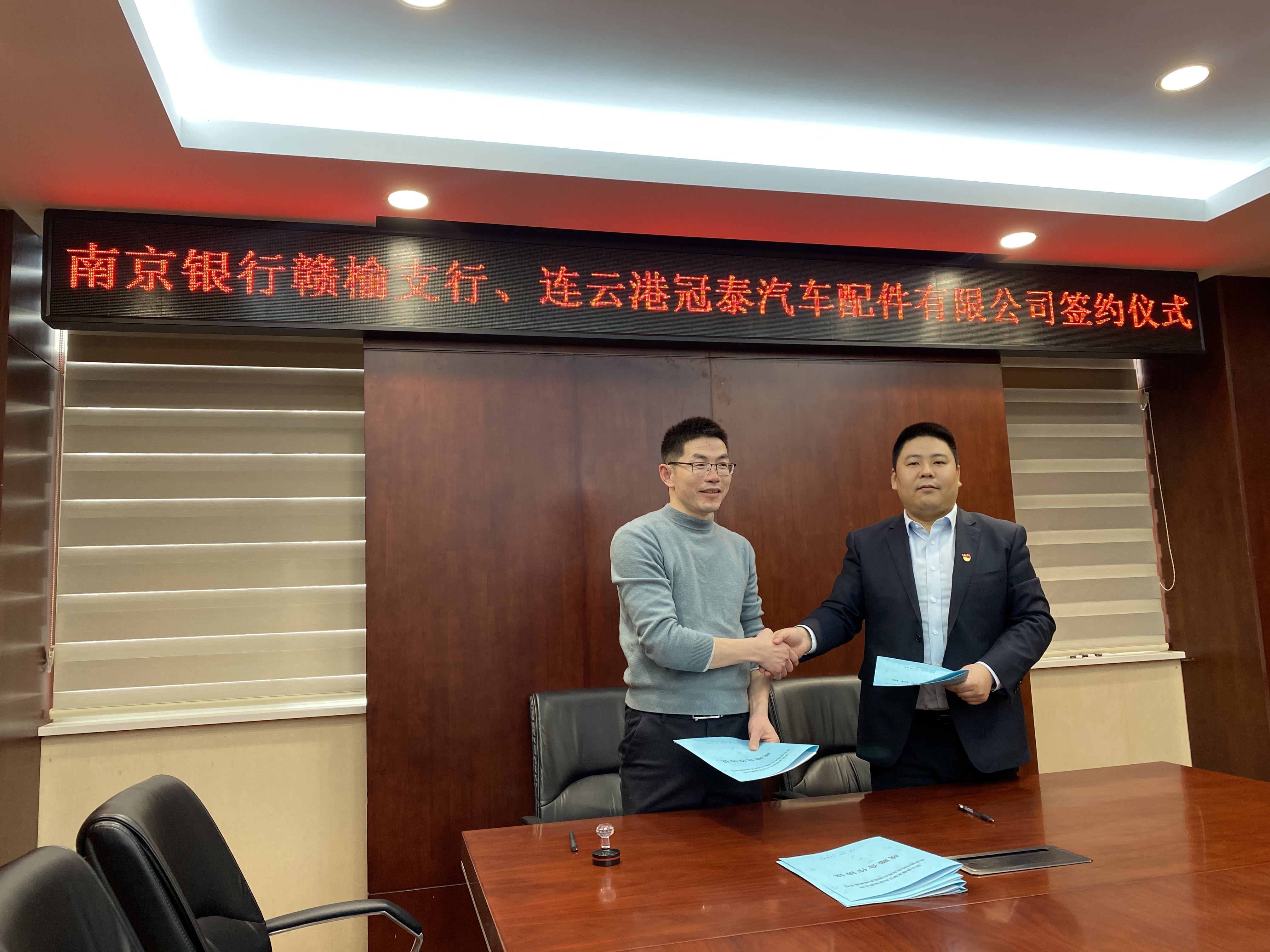 经过充分沟通交流,南京银行赣榆支行先后与赣榆区返乡创业商会及其2家会员企业(冠泰汽配、德友精工科技)举行签约仪式。