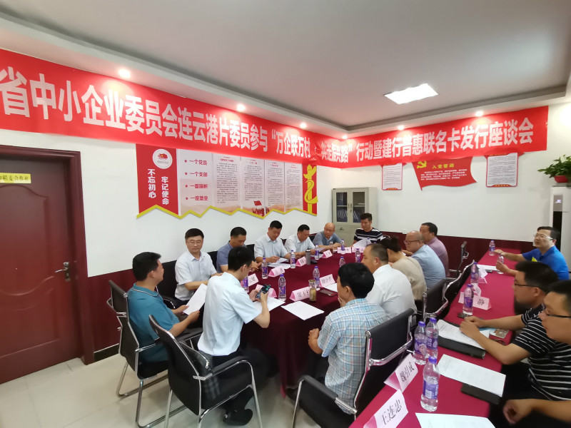 8月14日,省中小企业委员会连云港片委员参与“万企联万村 共走振兴路”行动暨建行普惠联名卡发行座谈会在秀收农业发展有限公司召开,市工商联领导仇延东主持会议并讲话。东海县人大常委会副主任、工商联主席李斌出席会议。