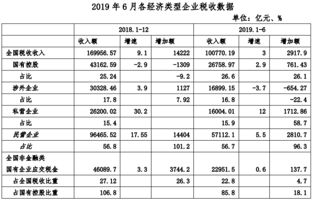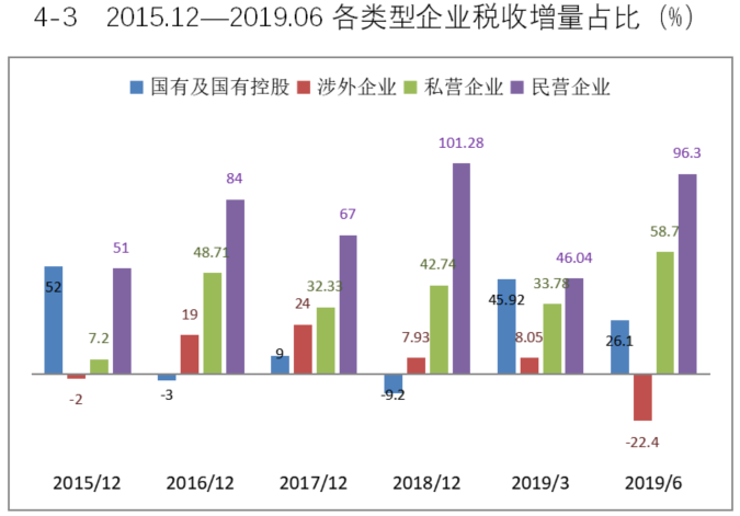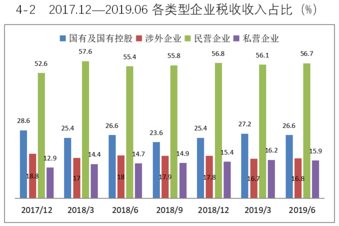 2018年,国有企业、外资企业与私营企业税收总额占比分别为25.4%、17.8%和15.4%;