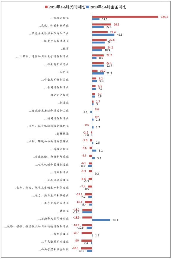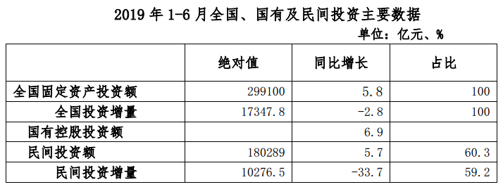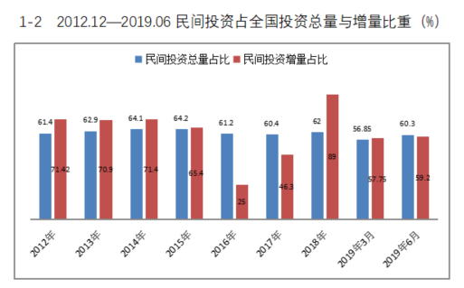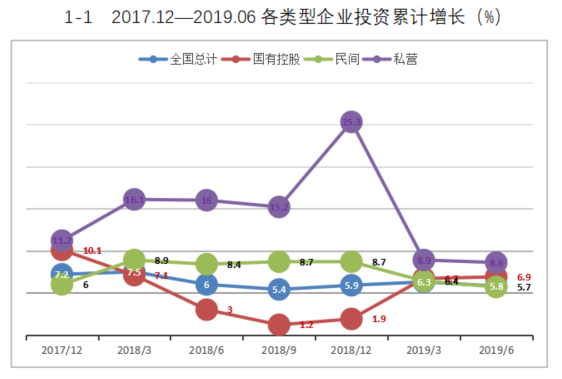 1-3 2019年1-6月全国与民间各行业投资增速